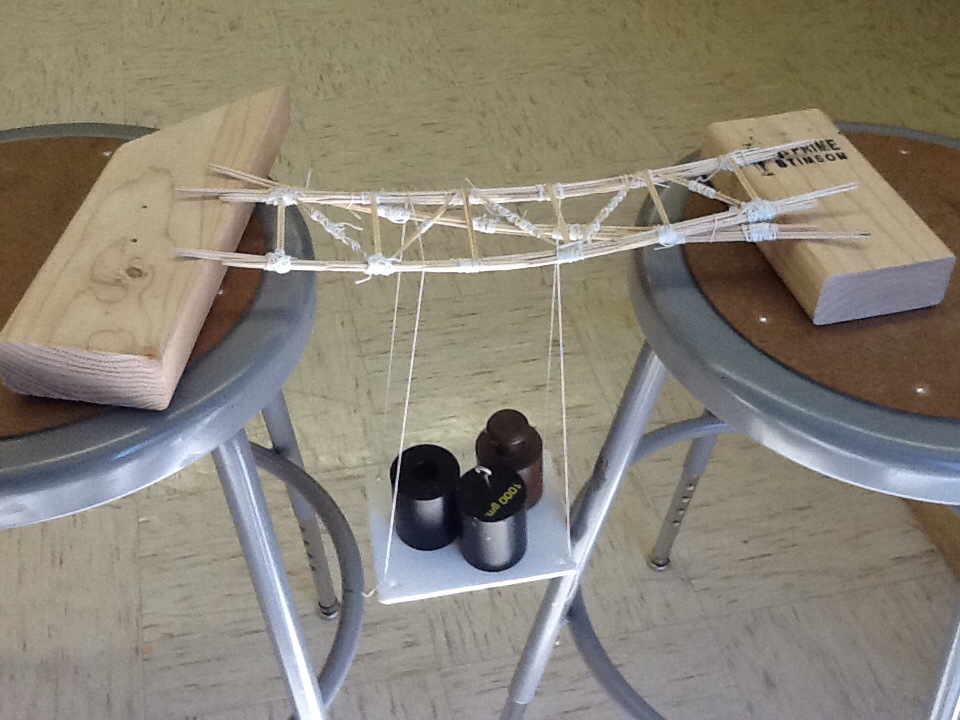 The first problem arose when we found that toothpicks started to disappear and then we found out that Cloa likes to chew toothpicks, so we had to keep her from doing that. The glue wasn’t drying fast enough to make the bridge so we decided to use a hair dryer, to make it dry faster and we succeeded in blowing pieces of bridge everywhere, that was our second problem. We started to run out of time to make the top of the bridge so we just glued the top support beam to the bottom structure we had made and decided to go with that, trouble number three. So when it was finally dry and all put together. We went to go weigh our bridge the first problem with that was the span of the space the bridge had to cross was 16” and we made our bridge exactly 16”. Our bridge also looked pretty flimsy and Ms.Sauter told us it probably wouldn’t hold much. So I started putting the weights on it when I got 1000g I was like, “okay going to break now,” but I decided to keep going and try 2000g.. Then I got 3000g and I was just like, “oh my goodness don’t break on me,” I was so scared. I finally get to 4500g and I start to hear creaking, the flimsy little bridge my group made just held for thousand 4500g, I was very happy. I learnt that you need to manage your time well and if you don’t give up everything will work out in the end.