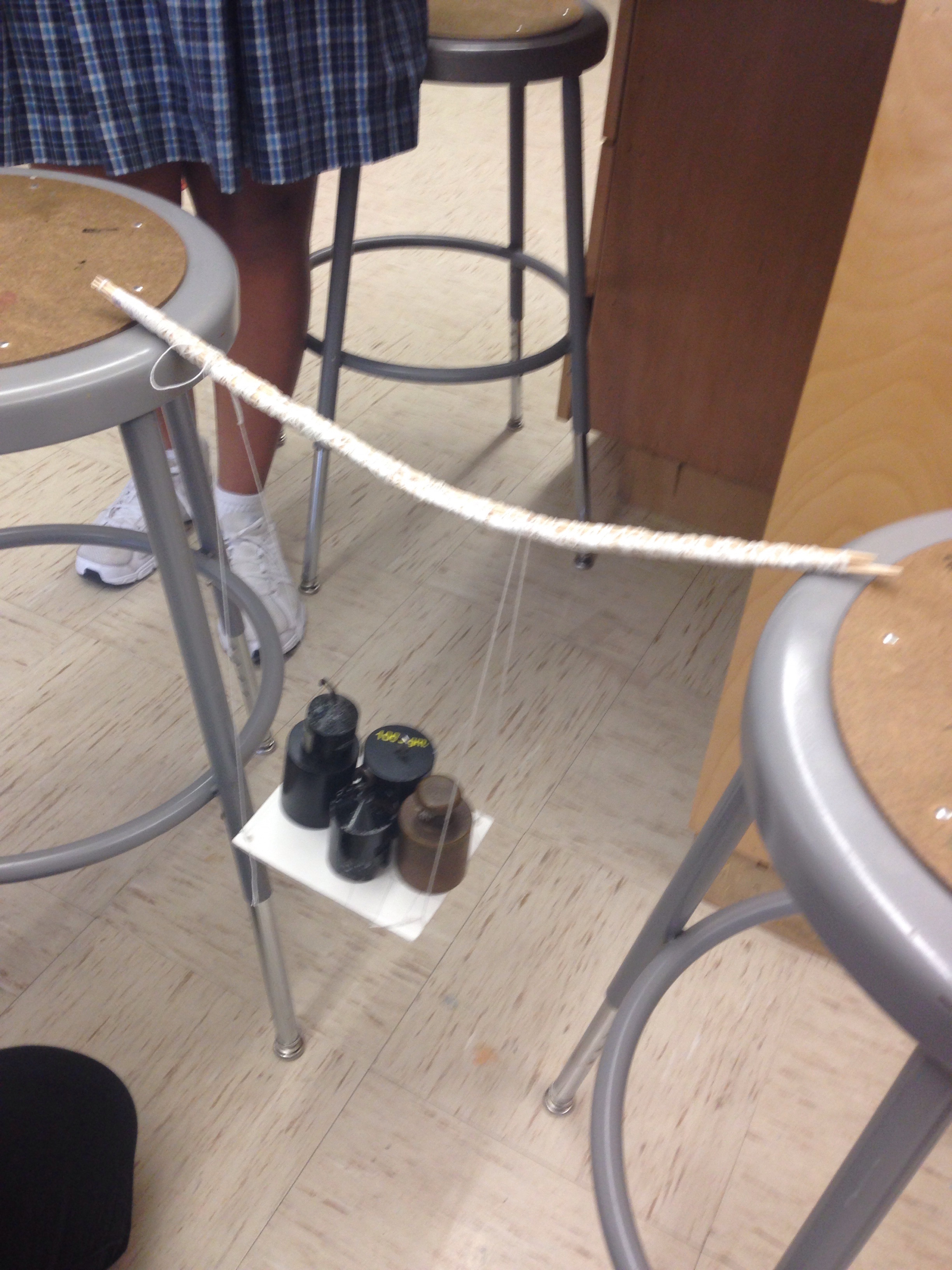The process of making this bridge was not an easy one. We had to only use toothpicks, string and glue. It had to be under 40g and a minimum of 16 inches long. We had to throw away our bridge and redo it about 5 times. We could never get it under 40g without it being too weak. But by using skills we learned from STEM we came up with a new and improved plan. We decided that we should stack the toothpicks in a brick like form then wrap it in string for extra support. Lastly was added glue in almost every crack so when it dried it would all stick together and be strong and sturdy. When we tested it it held 3,700g! We were very surprised that our bridge that we had that much, we were really surprised and happy!!