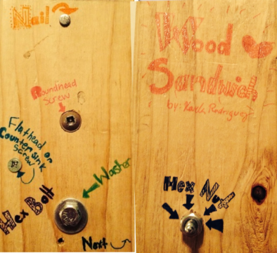 which is exactly what it sounds like. We had to assemble a Wood Sandwich (and no, it is not edible) which included sawing, nailing and screwing. There were about two parts which were very difficult to put in; the round head screw and the hex nut. For the round head screw, the drill wouldn’t go through the wood no matter what I did, it took a very long time