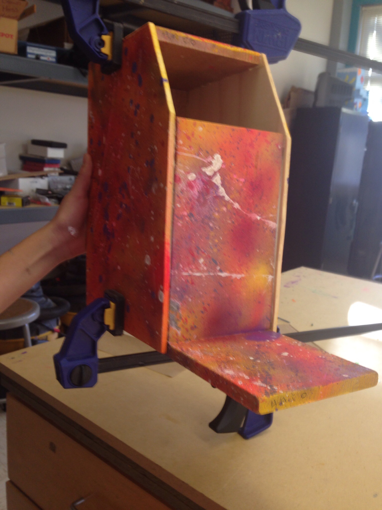 Construction and fabrication module was to build a bird house only using right angles. We use cedar fenceboard, plywood, wood glue, and spray paint. It was so much fun. I wish I could build another.