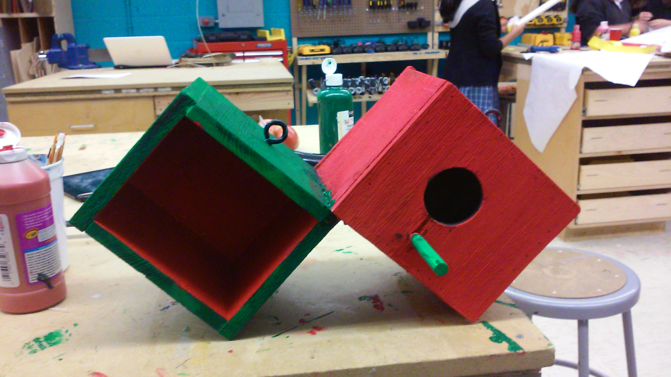 That happened when I dreamt about the bird house we made on the previous week. It’s was really fun. This module help me learn how to use the power tools, which help a lot with topographic map, because I could cut a lot woods. This module is about learning and getting comfortable with the power tools in the makerspace. All the power tools seem to be scary, but when you learn how to be safe, everything is a piece of cake. This week challenge was for us to make a bird house. Our team have to came up with the design, which was easy because I have a really creative teammate. We came up with a really interesting design, and started building right away. First we had to cut the wood, which is really fun. Then the most time consuming part is when we glue the wood together, and waited for it dry. After it dried we got to use the air compressor, which was awesome. We used the brad nailer, which was something worth learning how to use, because it saves you a lot of time from hammering nails. Finally we get to paint. I was really dedicated to it, because I was the one who actually stayed after and painted the house. I’m not a perfectionist, but when I touch something or do something, I have to do it right, and do my best. If you do something heartlessly, the product is not going to be good. If you try your best at something, you’ll feel really good in the end. I have that wonderful happy feeling when I finish with a project. All the hard works I put in seemed to pay off. All the stress seemed to fade away, and the feeling of relief and pride fill in.