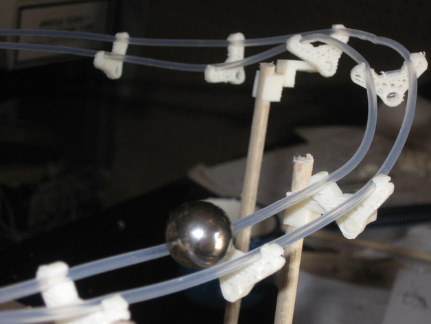 function. In our case we’re printing brackets that will hold the filament, which makes the paths for the marbles roll down. This 3D printed ramp will start lower than the other one but will join with wooden ramp. When the two ramps combine they will make a more advanced looking version of the wooden one.